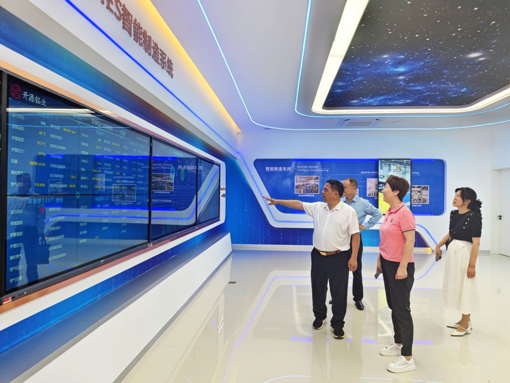 President Xu Yun and his delegation first visited the Digitalization Achievements Exhibition Center of Baotai Group. Upon entering the exhibition center, they were presented with the group's innovative achievements and the full picture of its digital transformation practices through various forms such as digital screens and visual data boards. President Peng Baotai detailed the group's development journey and explained how it has relied on digital technology to achieve intelligent upgrades across the entire industrial chain, from the recycling and processing of scrap metals to the recycling of copper and aluminum materials. He also shared digital application cases such as the "one-click copper production" in the intelligent phosphor bronze ball workshop and the precise monitoring of the production process by the intelligent system. The advanced digital management system and high-value product innovation achievements fully demonstrated Baotai Group's leading position in the digital transformation of the industry.
